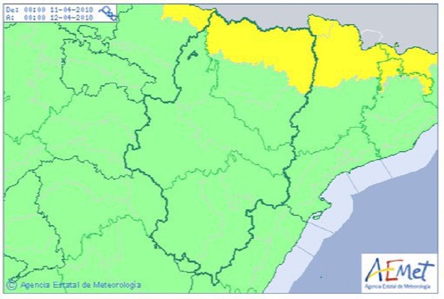 La Dirección General de Justicia e Interior informa de que la Agencia Estatal de Meteorología (AEMET) ha emitido un aviso nivel amarillo por aludes en el Pirineo aragonés entre las 00:00 horas y 24:00 horas del día 11.
