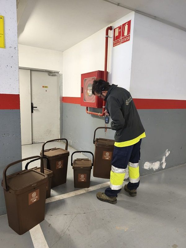 Los establecimientos adheridos separan la fracción orgánica —incluyendo restos de alimentos, corchos y palillos— y la depositan en cubos específicos proporcionados por el servicio. El equipo de recogida, formado actualmente por dos trabajadores y un refuerzo, se encarga de retirar los recipientes y sustituirlos por otros limpios.
