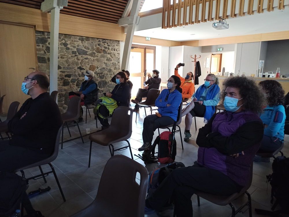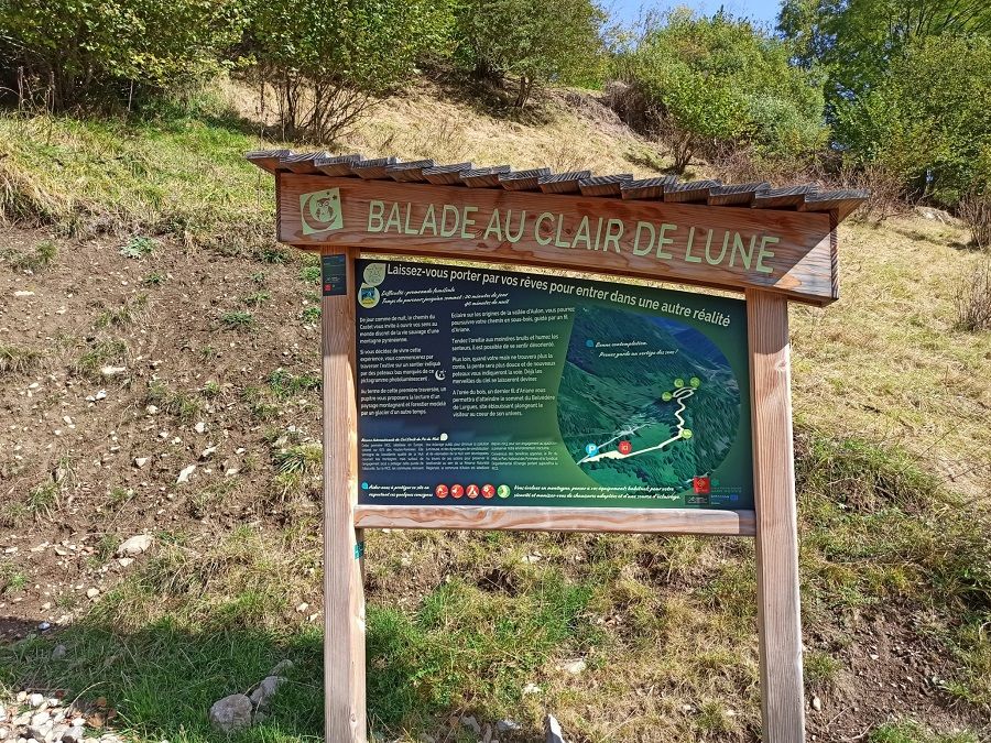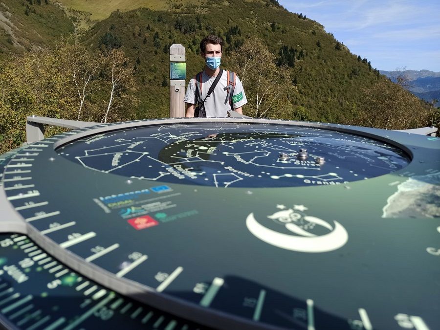 Primero, el grupo se dirigió hacia las bordas de Lurgues, a unos 20 minutos de Aulon para descubrir el sendero “a la luz de luna”, cuya realización ha sido posible gracias a la financiación del POCTEFA DUSAL. Este sendero permite la observación del cielo por la noche. Marcas luminiscentes guían al visitante hasta sus instalaciones: un mirador, un mapa del cielo, también luminiscente, con posibilidad de instalar hamacas para una observación cómoda y un banco de observación donde poder disfrutar de la calma y del cielo.