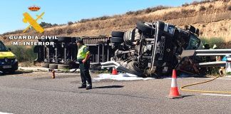 Un herido por el vuelco de un camión en la A-22...
