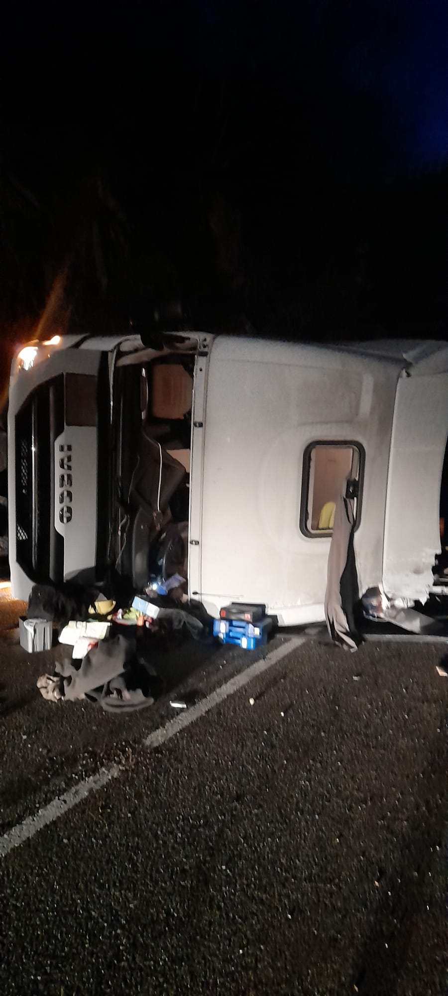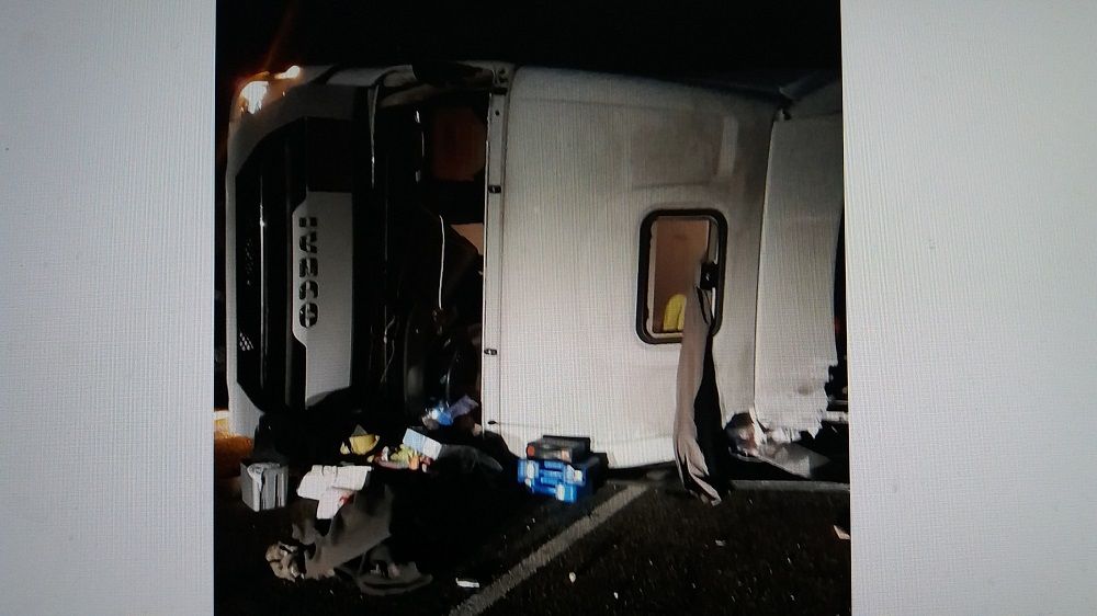 - Ha volcado un camión en la carretera A-138, a la altura de Salinas. El conductor con heridas leves ha sido trasladado en ambulancia a un centro hospitalario. Se desconocen las causas del accidente.